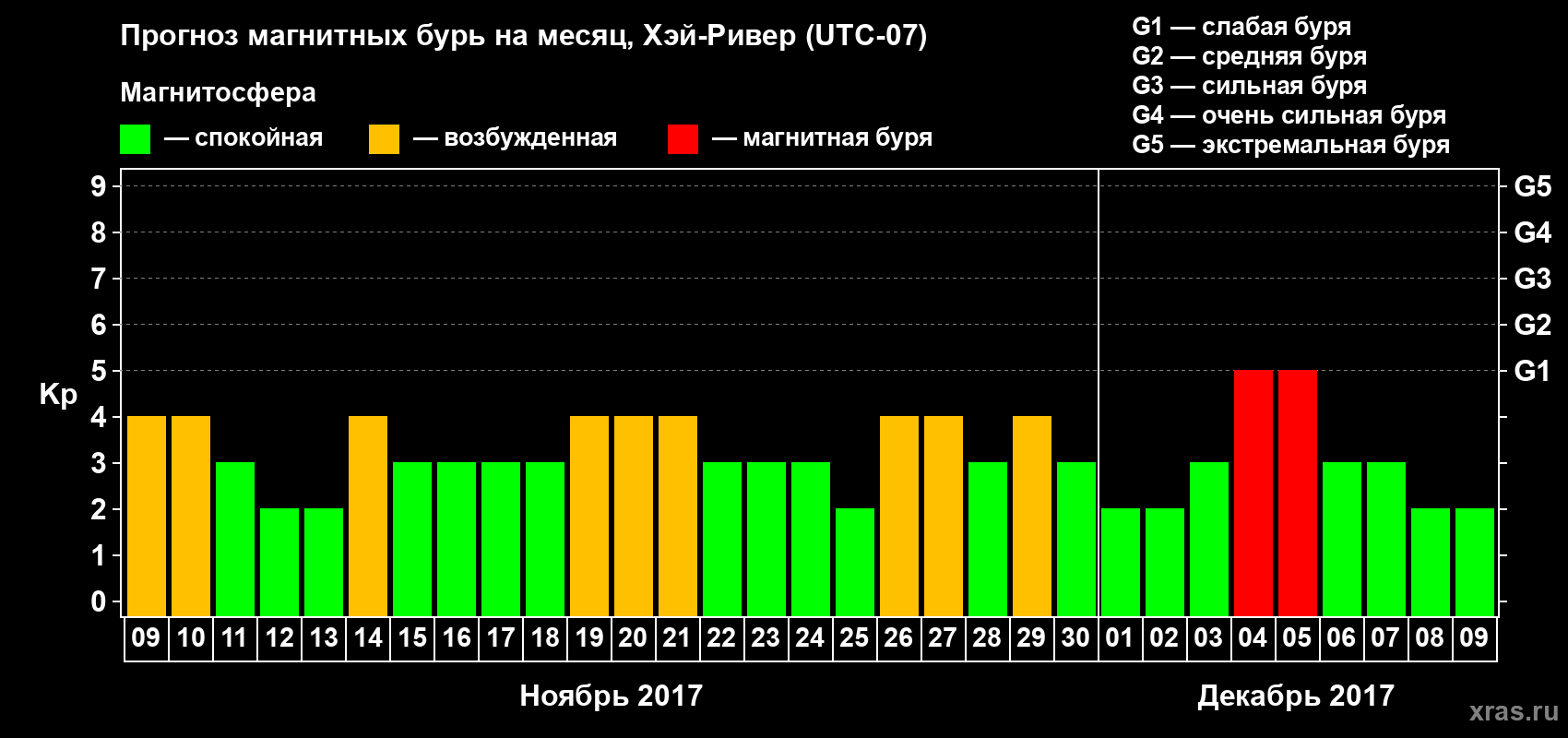 Прогноз магнитных бурь в Хэй-Ривере — 9 ноября 2017 года
