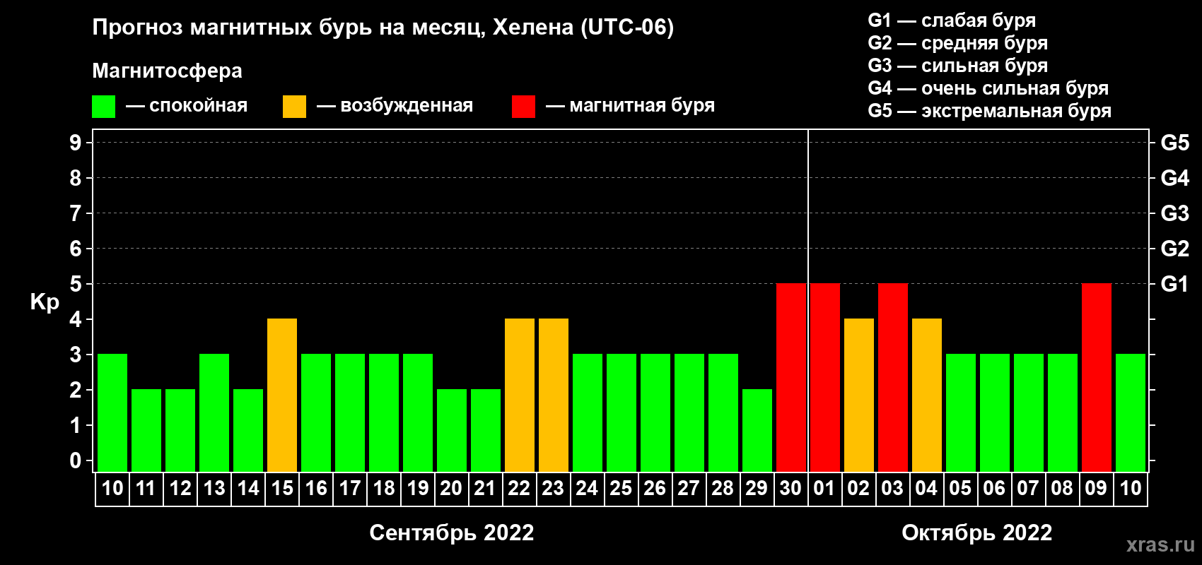 Прогноз магнитных бурь в Хелене — 10 сентября 2022 года