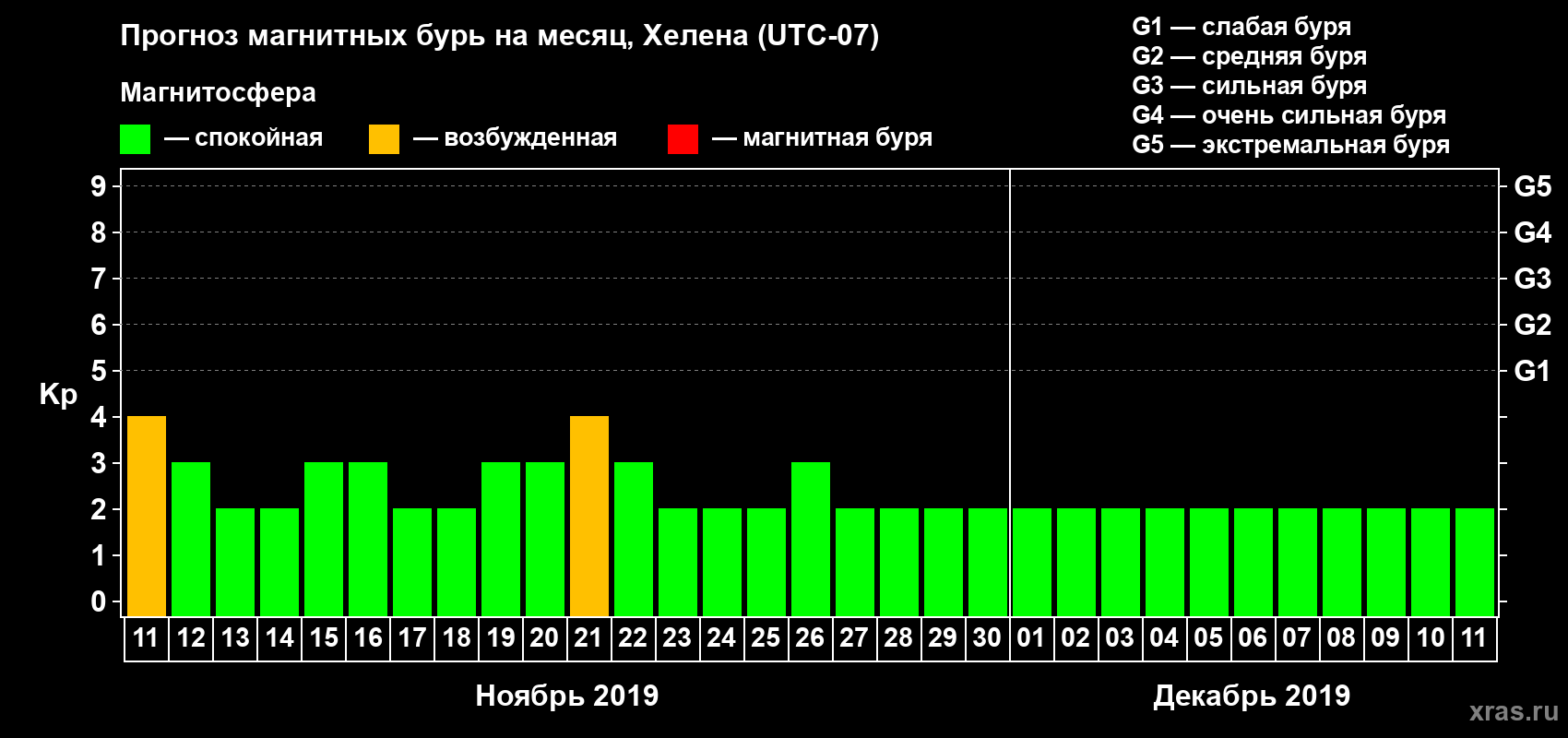 Прогноз магнитных бурь в Хелене — 11 ноября 2019 года