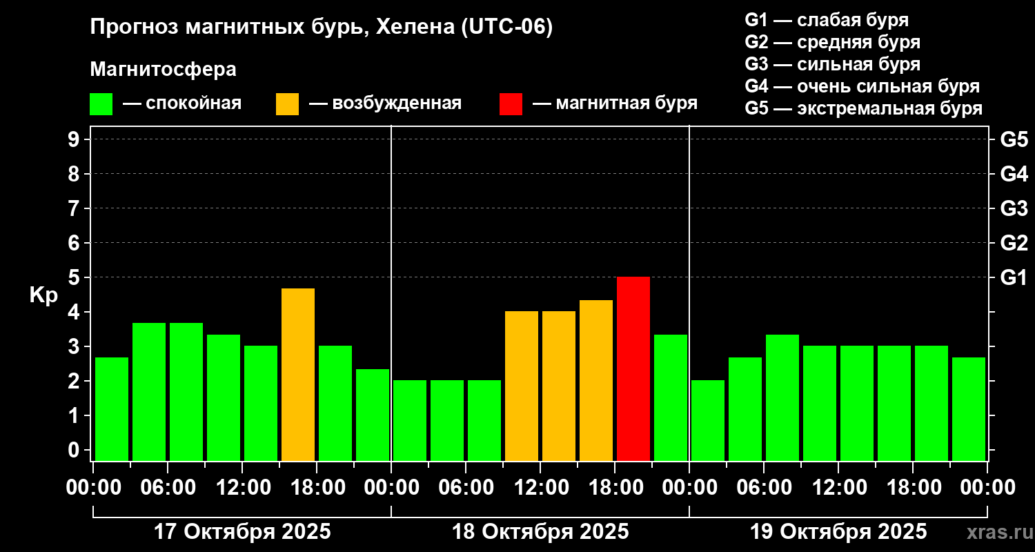 Прогноз магнитных бурь в Хелене — 17 октября 2025 года