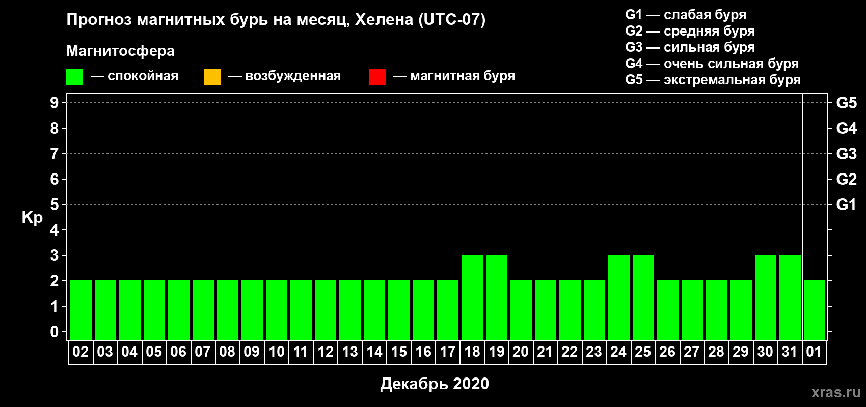 Прогноз магнитных бурь в Хелене на 2 декабря 2019 года