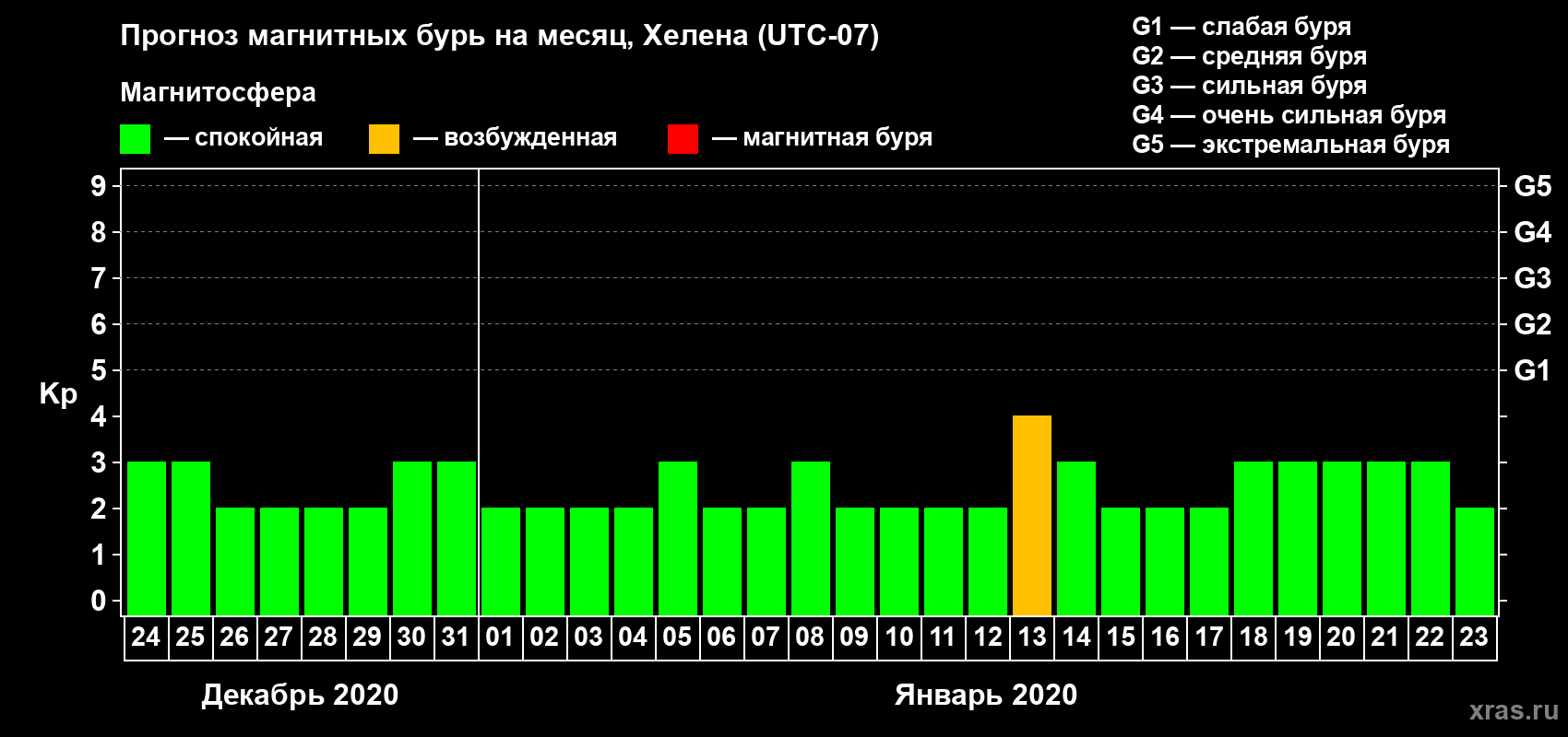 Прогноз магнитных бурь в Хелене — 24 декабря 2019 года