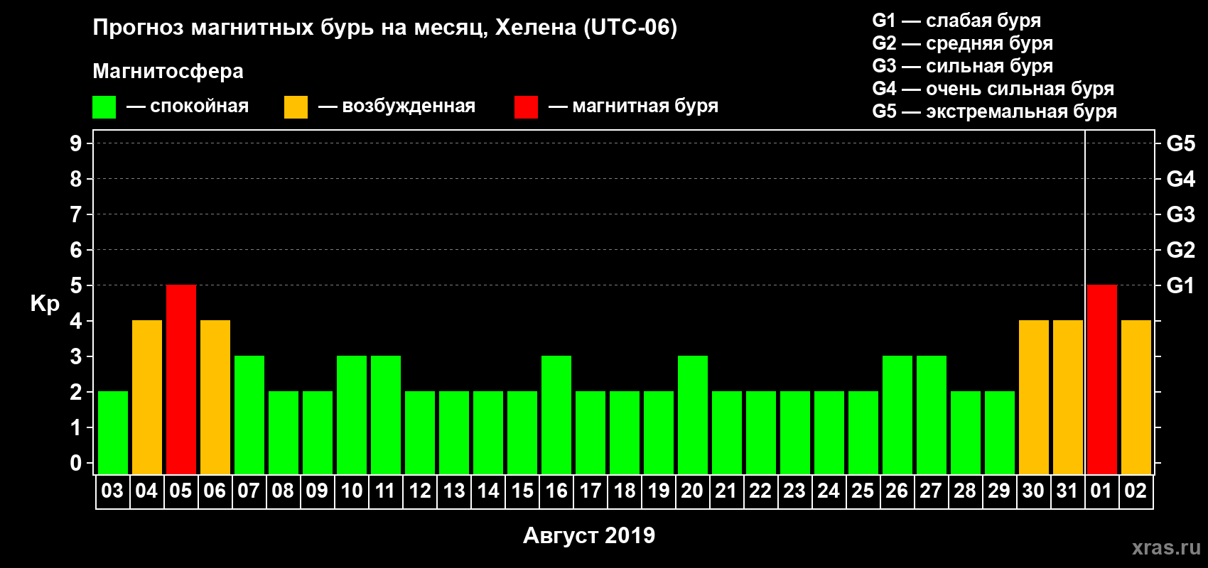 Прогноз магнитных бурь в Хелене — 3 августа 2019 года