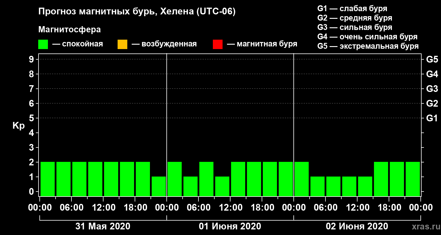 Прогноз магнитных бурь в Хелене на 31 мая 2020 года
