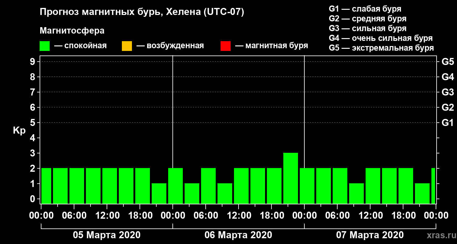 Прогноз магнитных бурь в Хелене — 5 марта 2020 года
