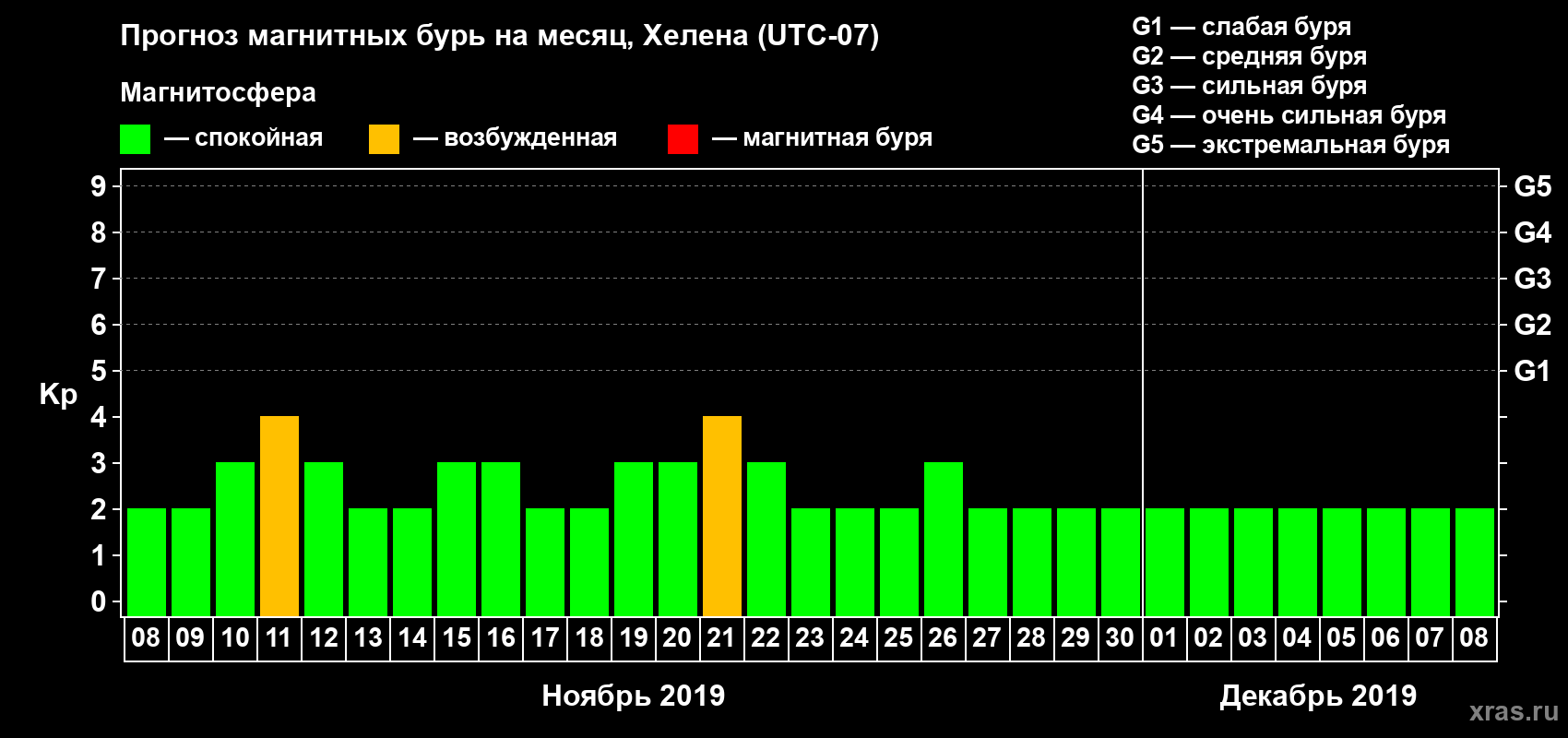 Прогноз магнитных бурь в Хелене — 8 ноября 2019 года