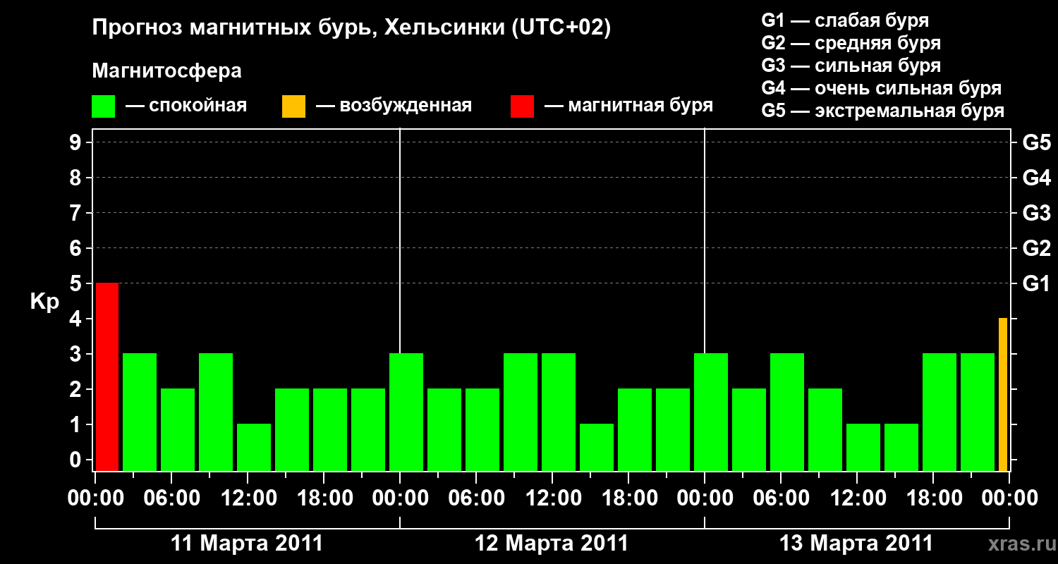 Прогноз магнитных бурь Хельсинки — 11 марта 2011 года