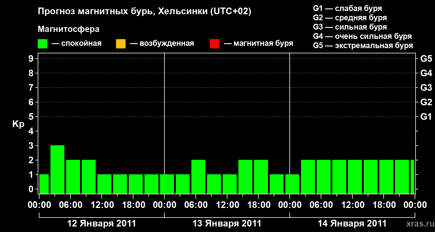 Прогноз магнитных бурь Хельсинки — 12 января 2011 года