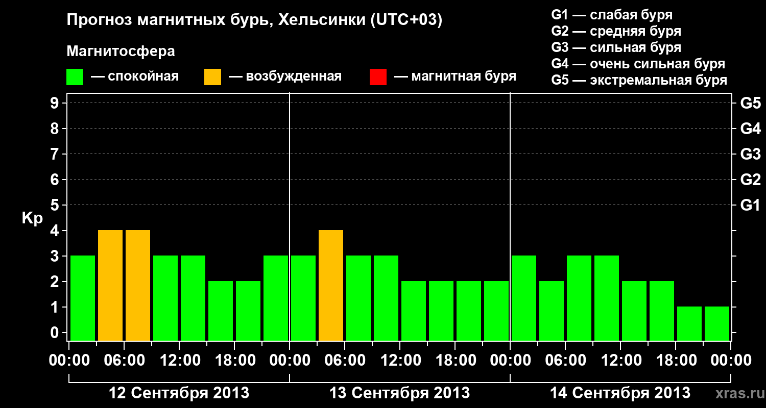 Прогноз магнитных бурь Хельсинки на 12 сентября 2013 года