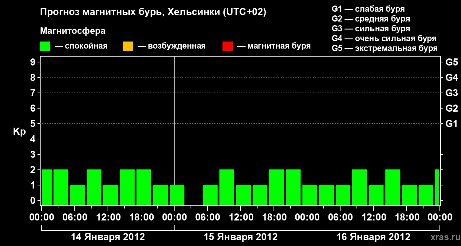 Прогноз магнитных бурь Хельсинки — 14 января 2012 года