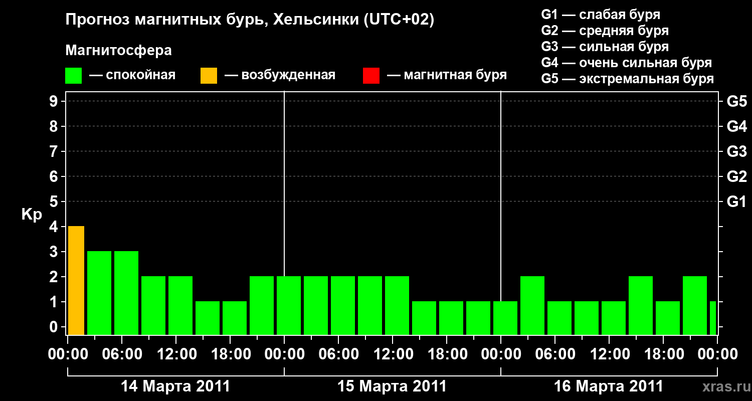 Прогноз магнитных бурь Хельсинки — 14 марта 2011 года