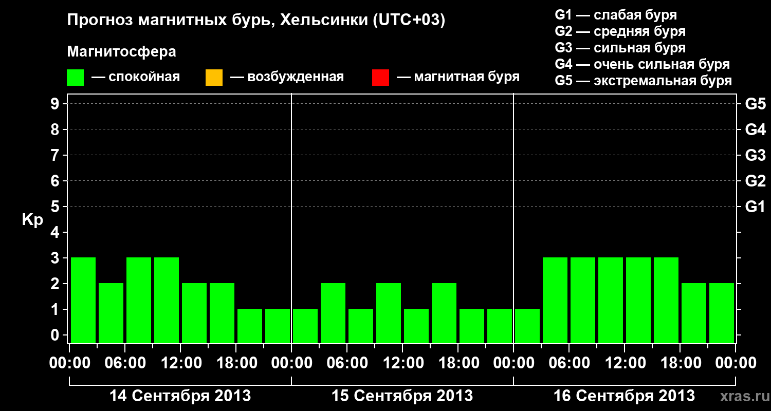 Прогноз магнитных бурь Хельсинки — 14 сентября 2013 года