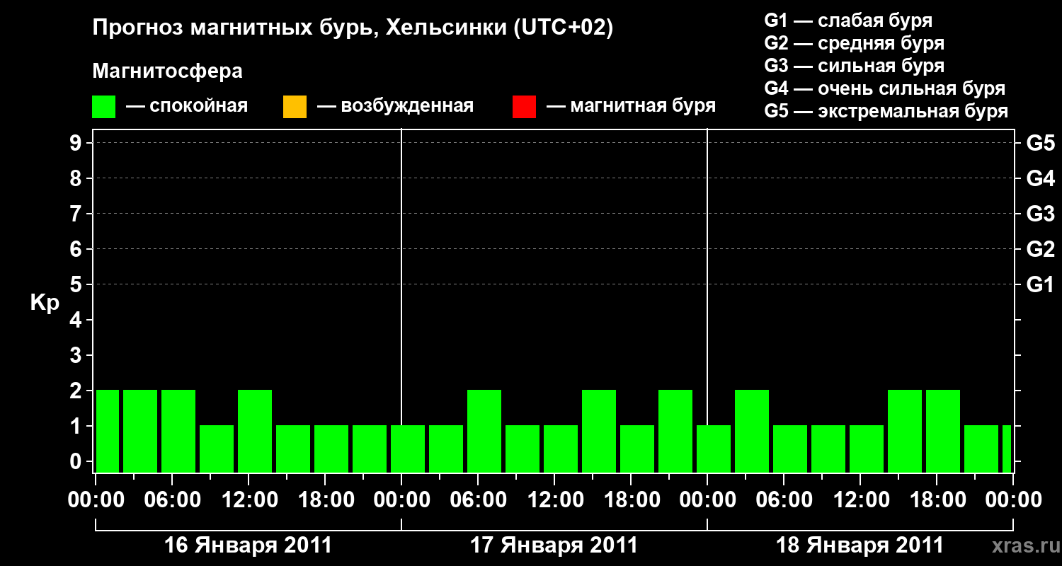 Прогноз магнитных бурь Хельсинки — 16 января 2011 года