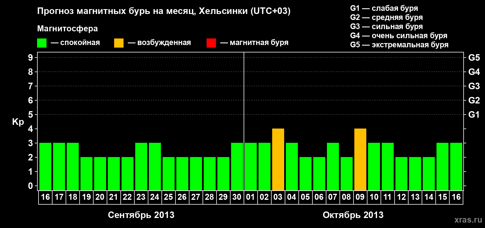 Прогноз магнитных бурь Хельсинки — 16 сентября 2013 года