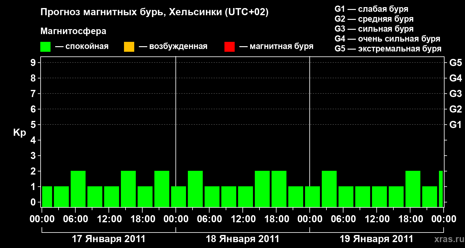 Прогноз магнитных бурь Хельсинки — 17 января 2011 года