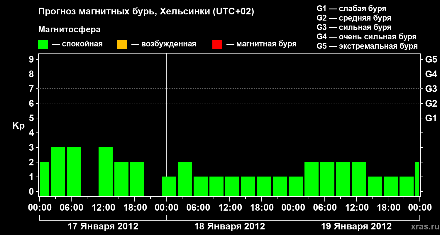 Прогноз магнитных бурь Хельсинки — 17 января 2012 года