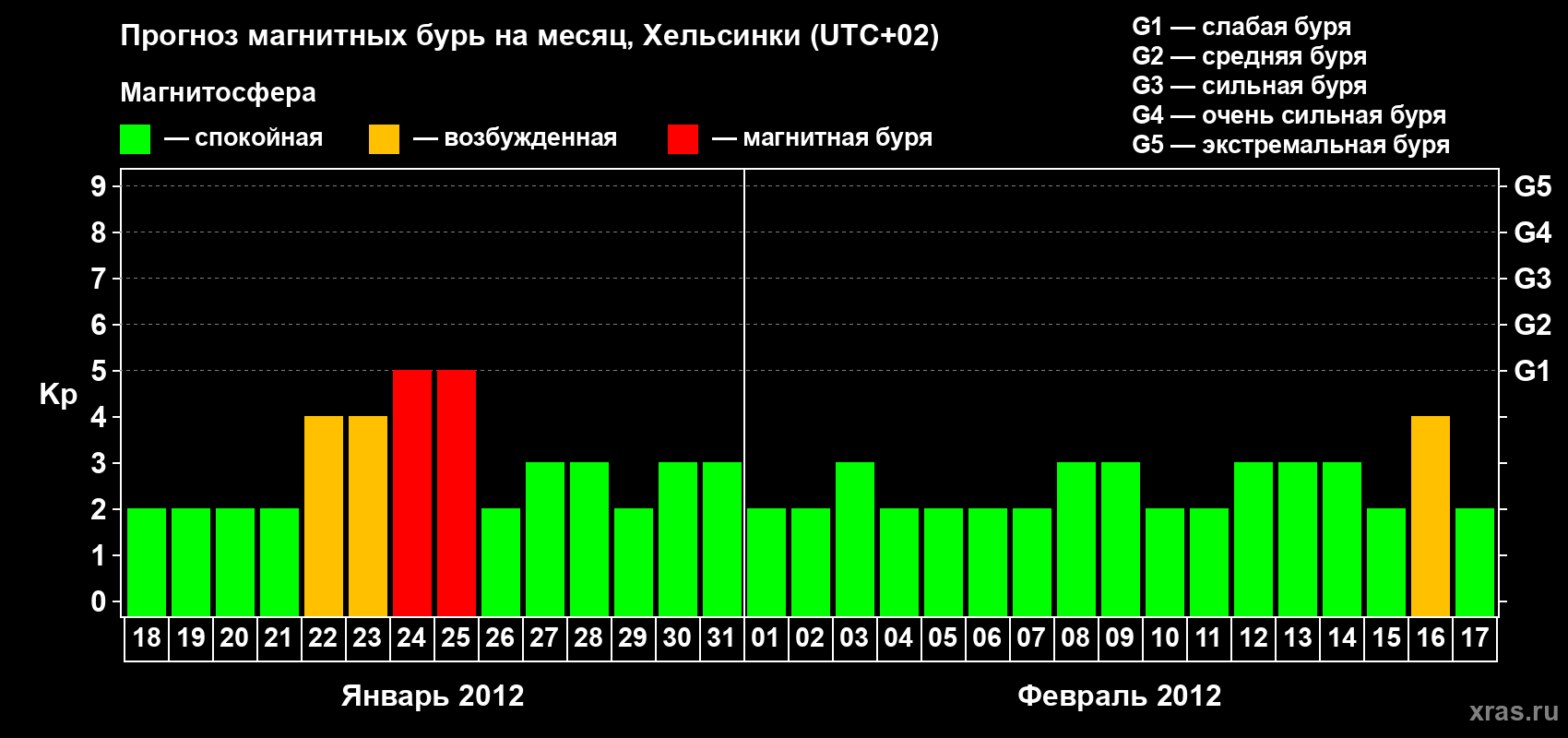 Прогноз магнитных бурь Хельсинки — 18 января 2012 года