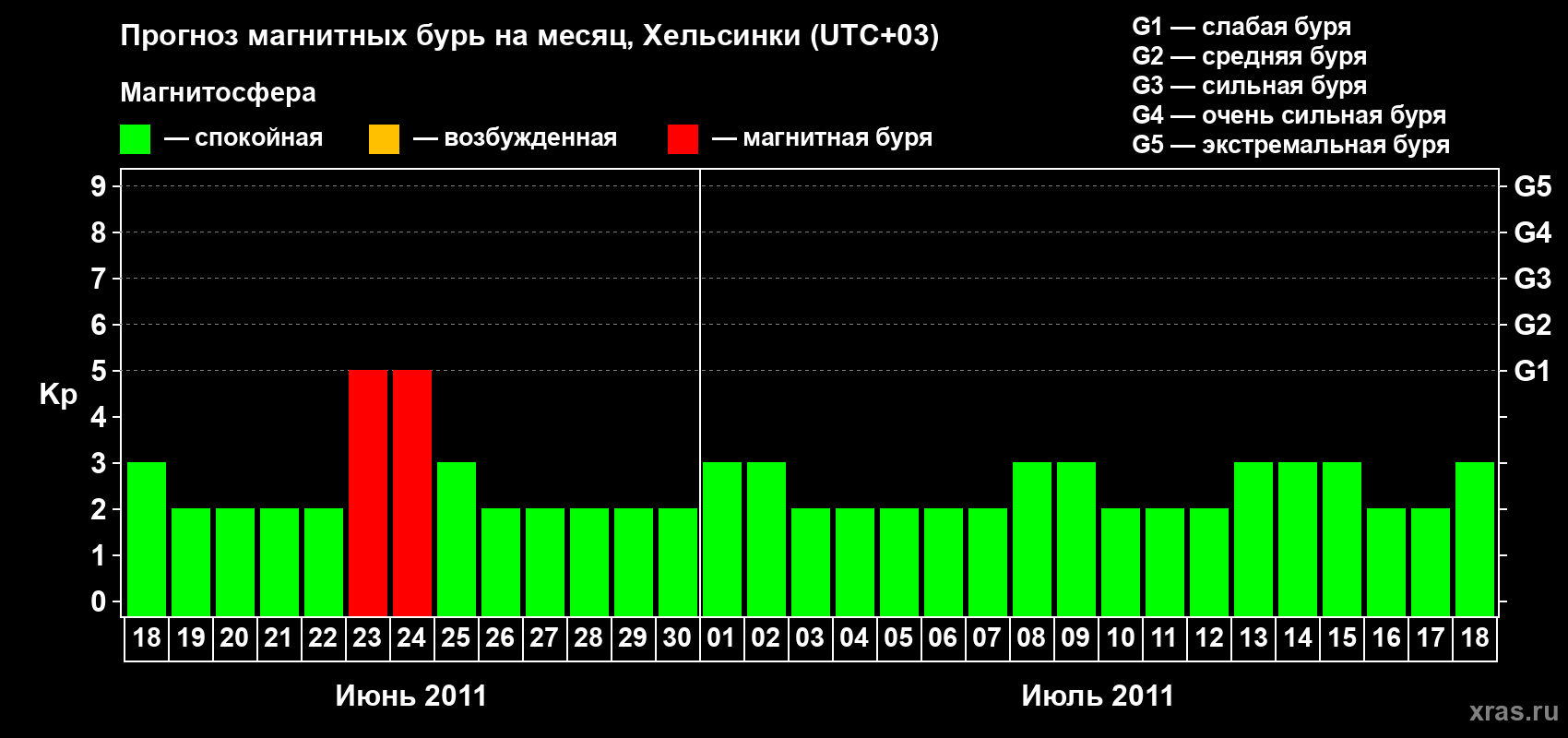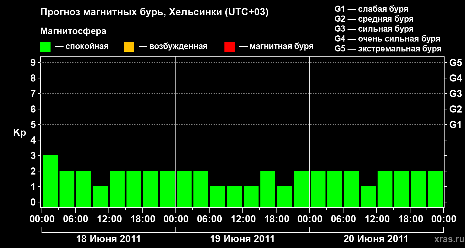 Прогноз магнитных бурь Хельсинки на 18 июня 2011 года