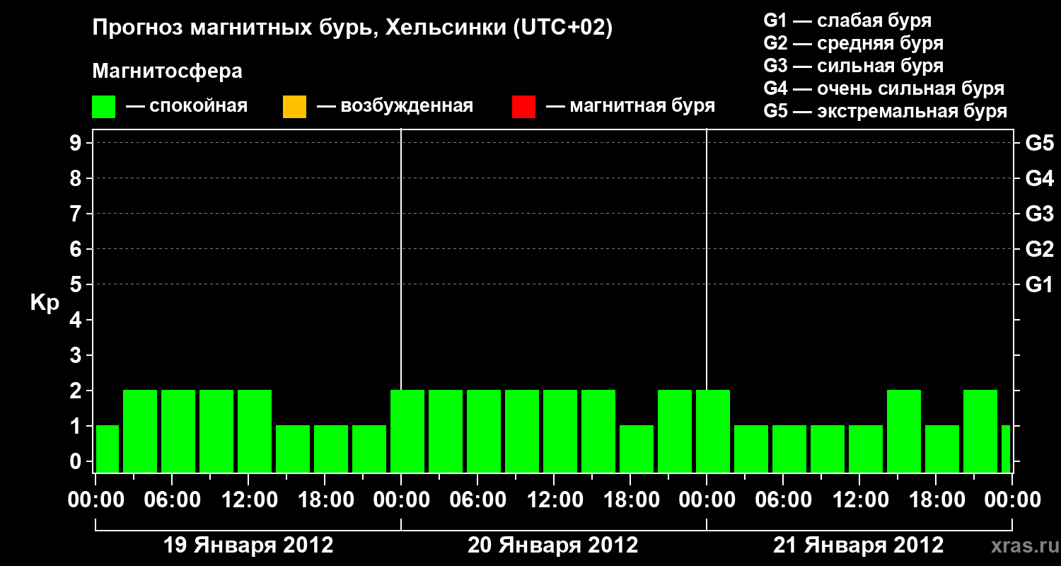 Прогноз магнитных бурь Хельсинки — 19 января 2012 года