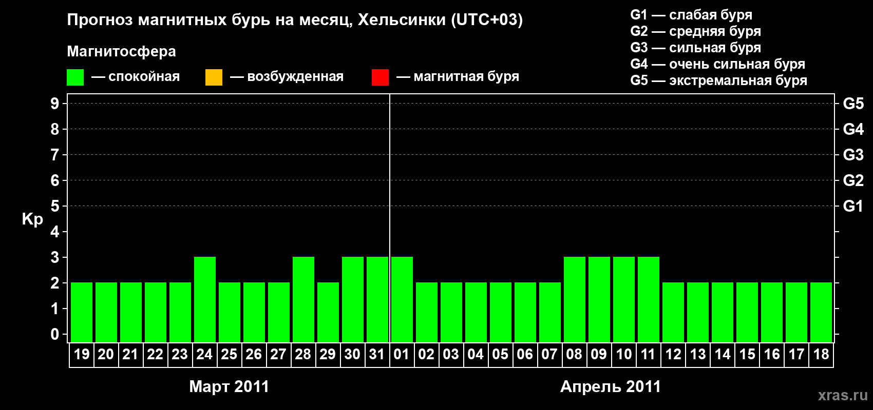 Прогноз магнитных бурь Хельсинки на 19 марта 2011 года
