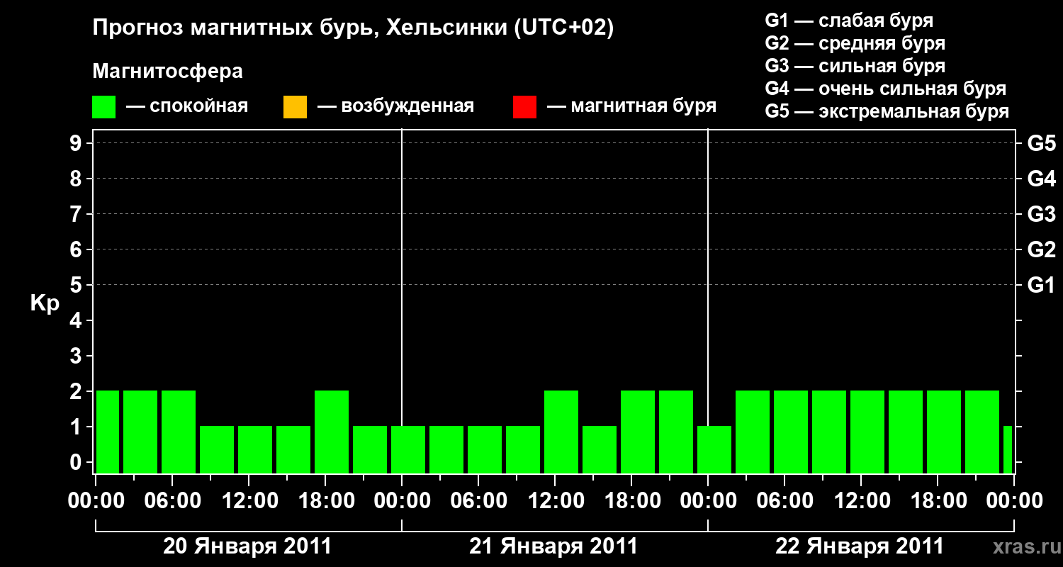 Прогноз магнитных бурь Хельсинки — 20 января 2011 года