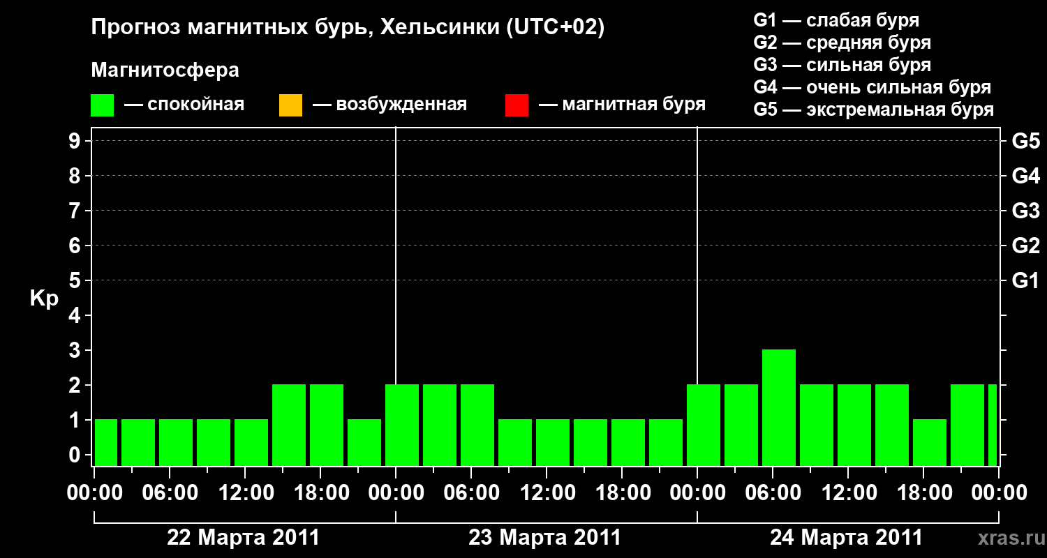 Прогноз магнитных бурь Хельсинки на 22 марта 2011 года