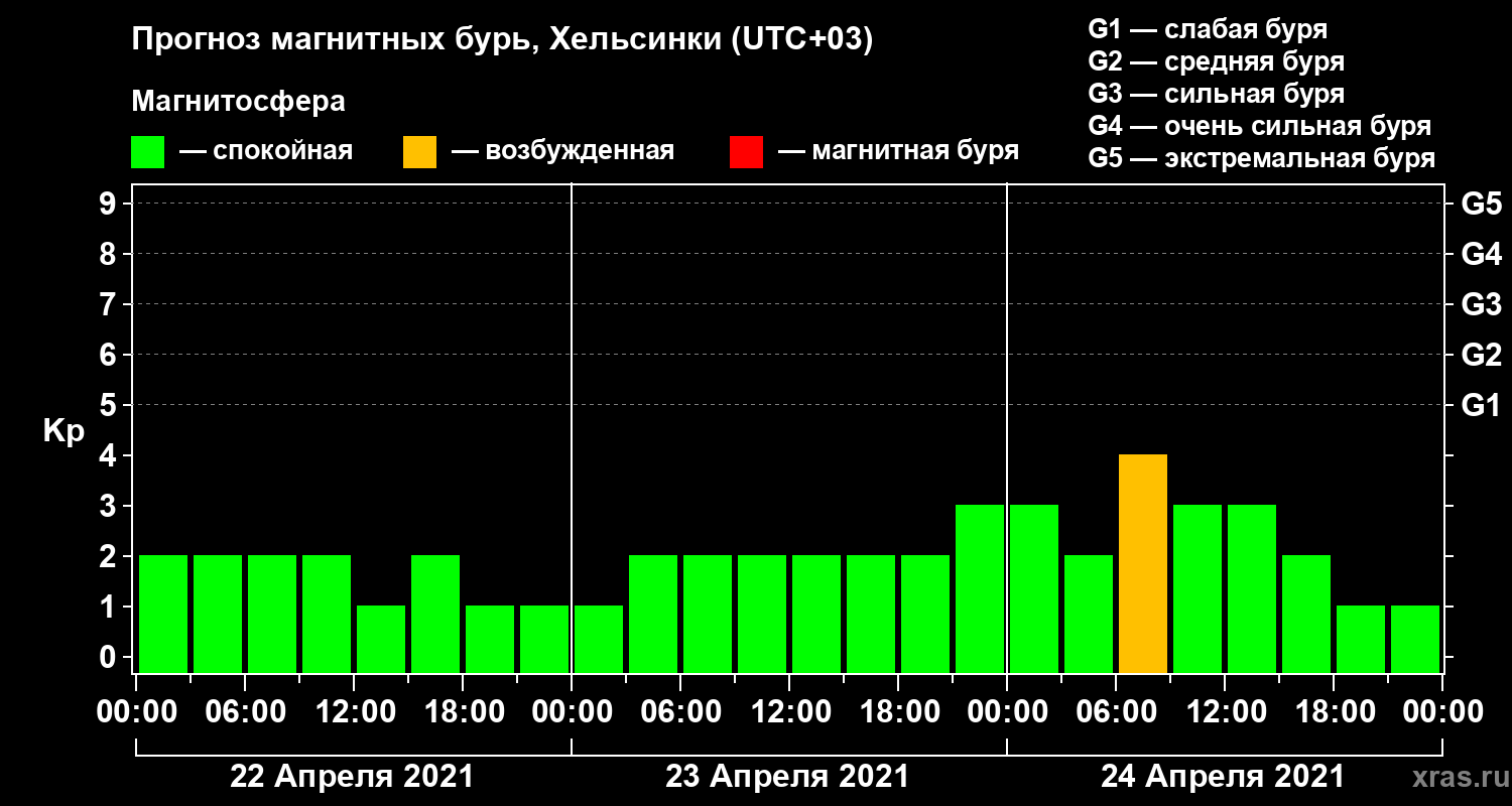 Прогноз магнитных бурь Хельсинки — 22 апреля 2021 года