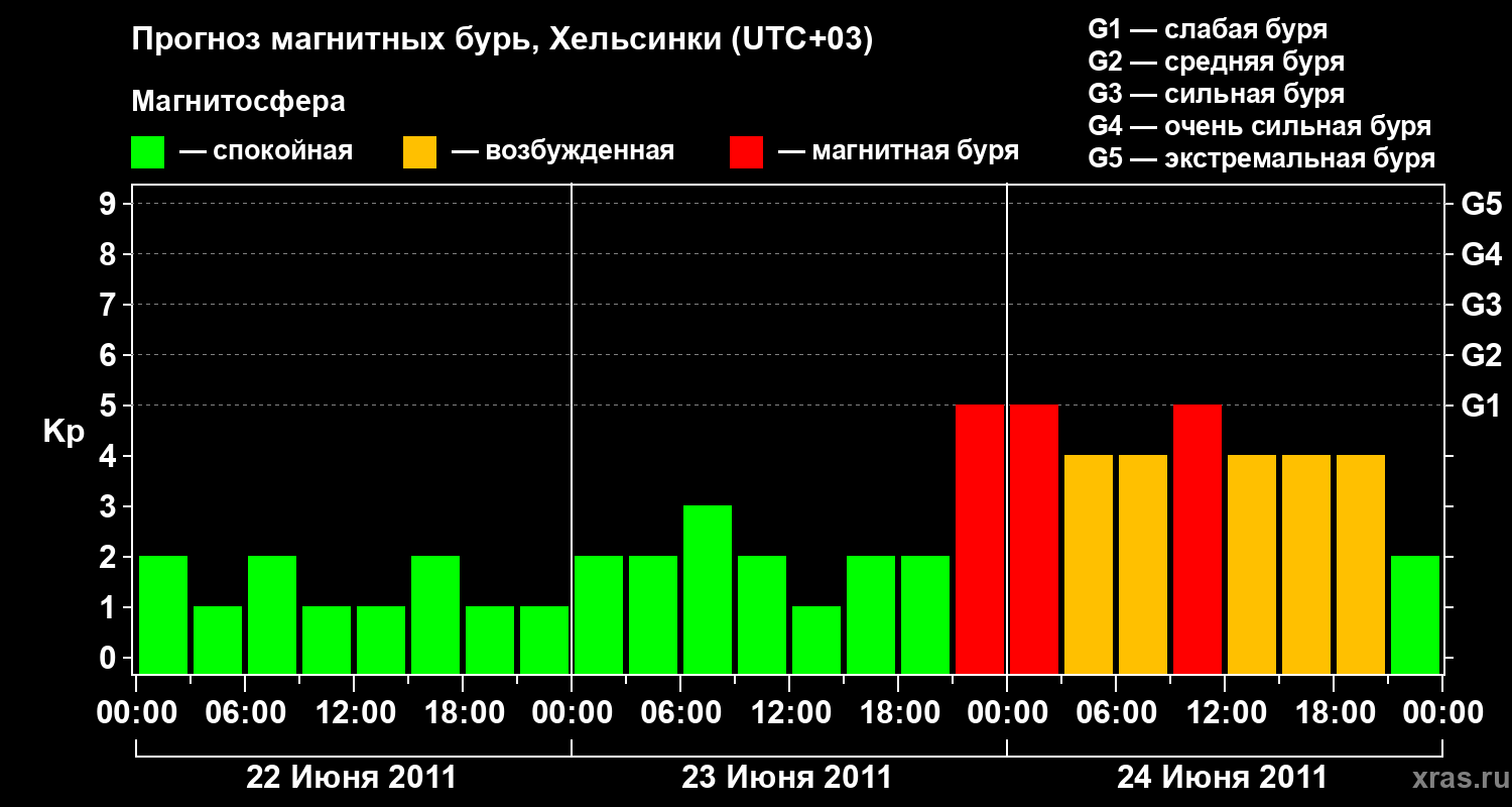 Прогноз магнитных бурь Хельсинки на 22 июня 2011 года