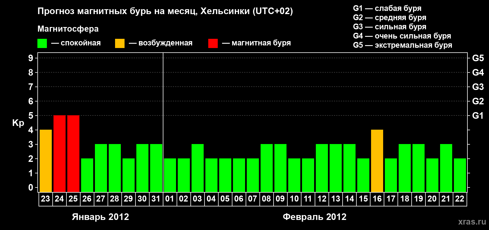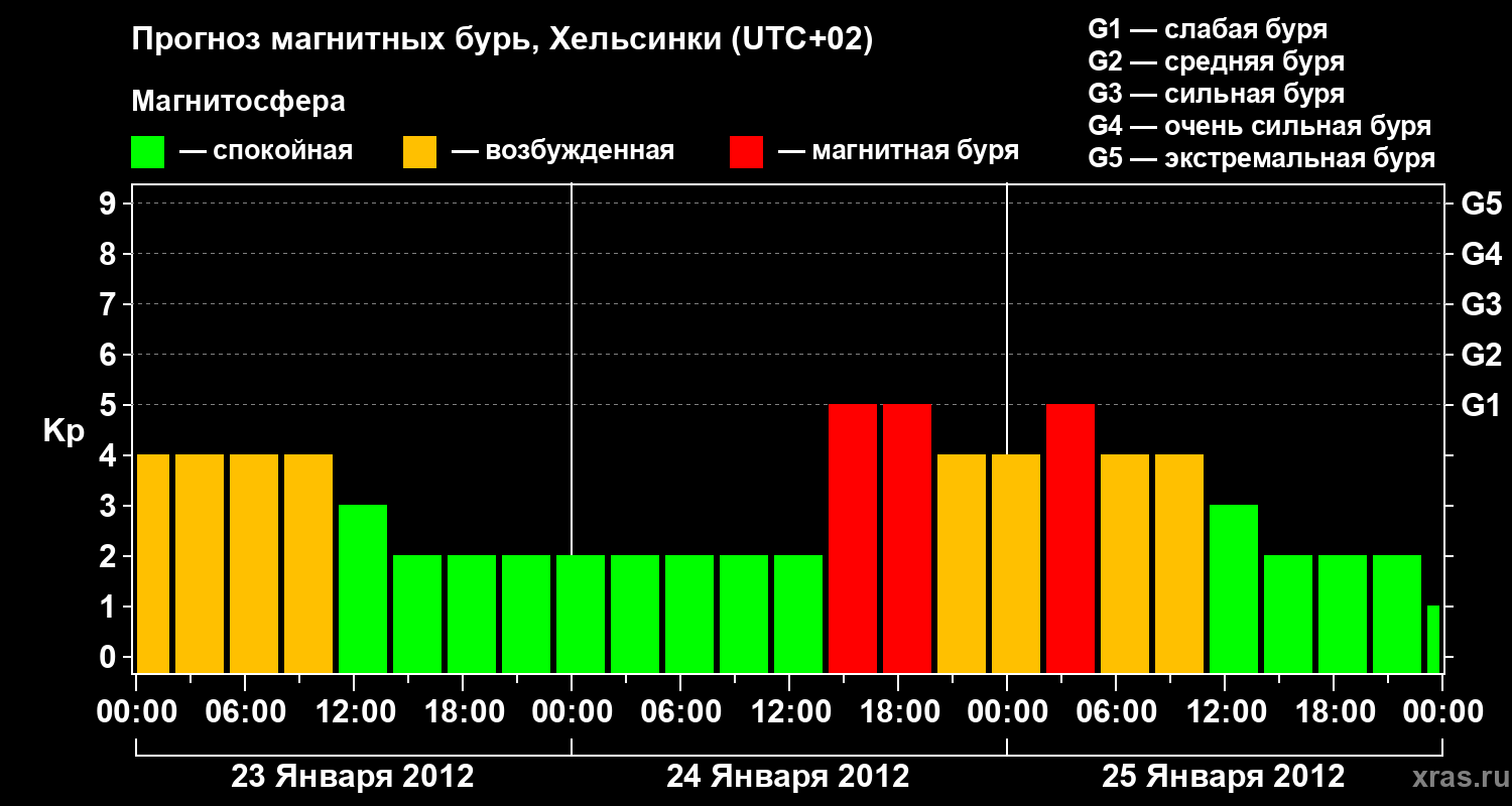 Прогноз магнитных бурь Хельсинки — 23 января 2012 года