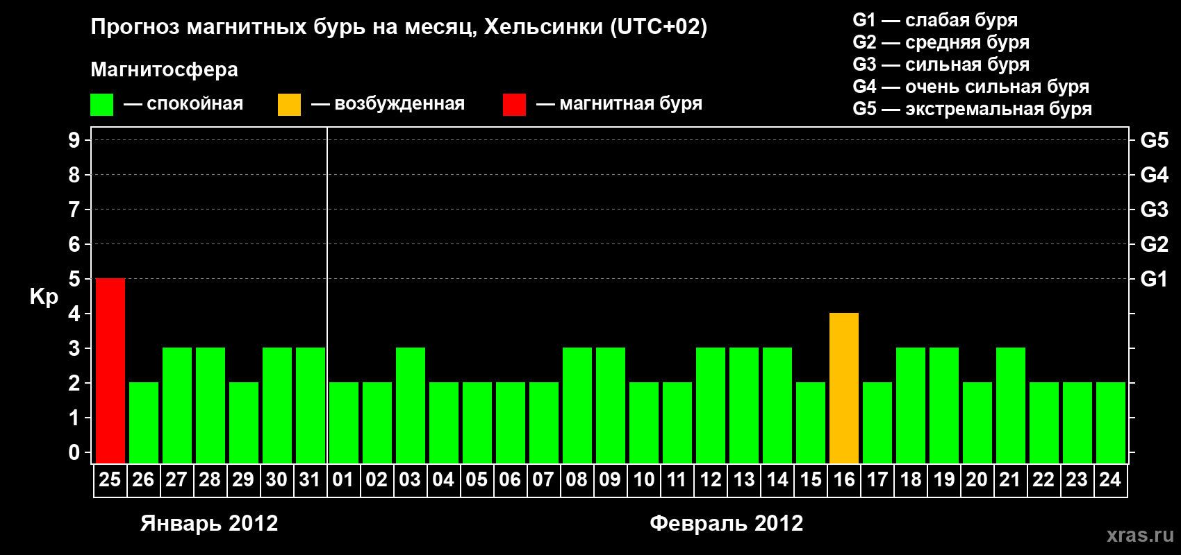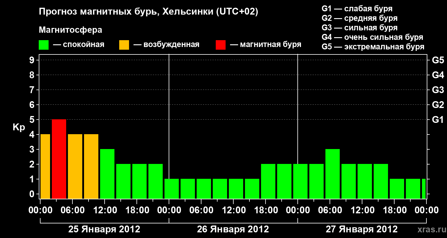 Прогноз магнитных бурь Хельсинки — 25 января 2012 года