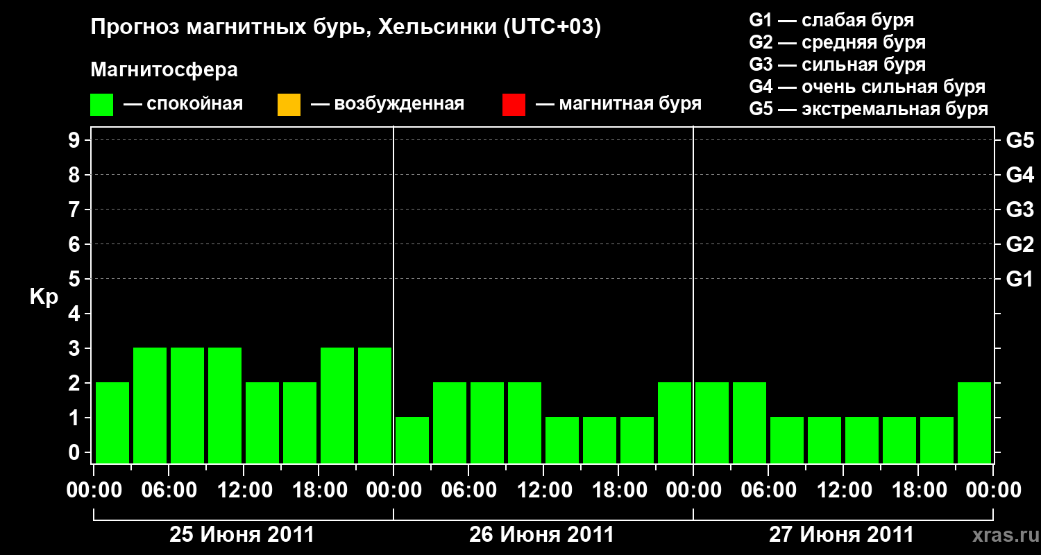 Прогноз магнитных бурь Хельсинки — 25 июня 2011 года