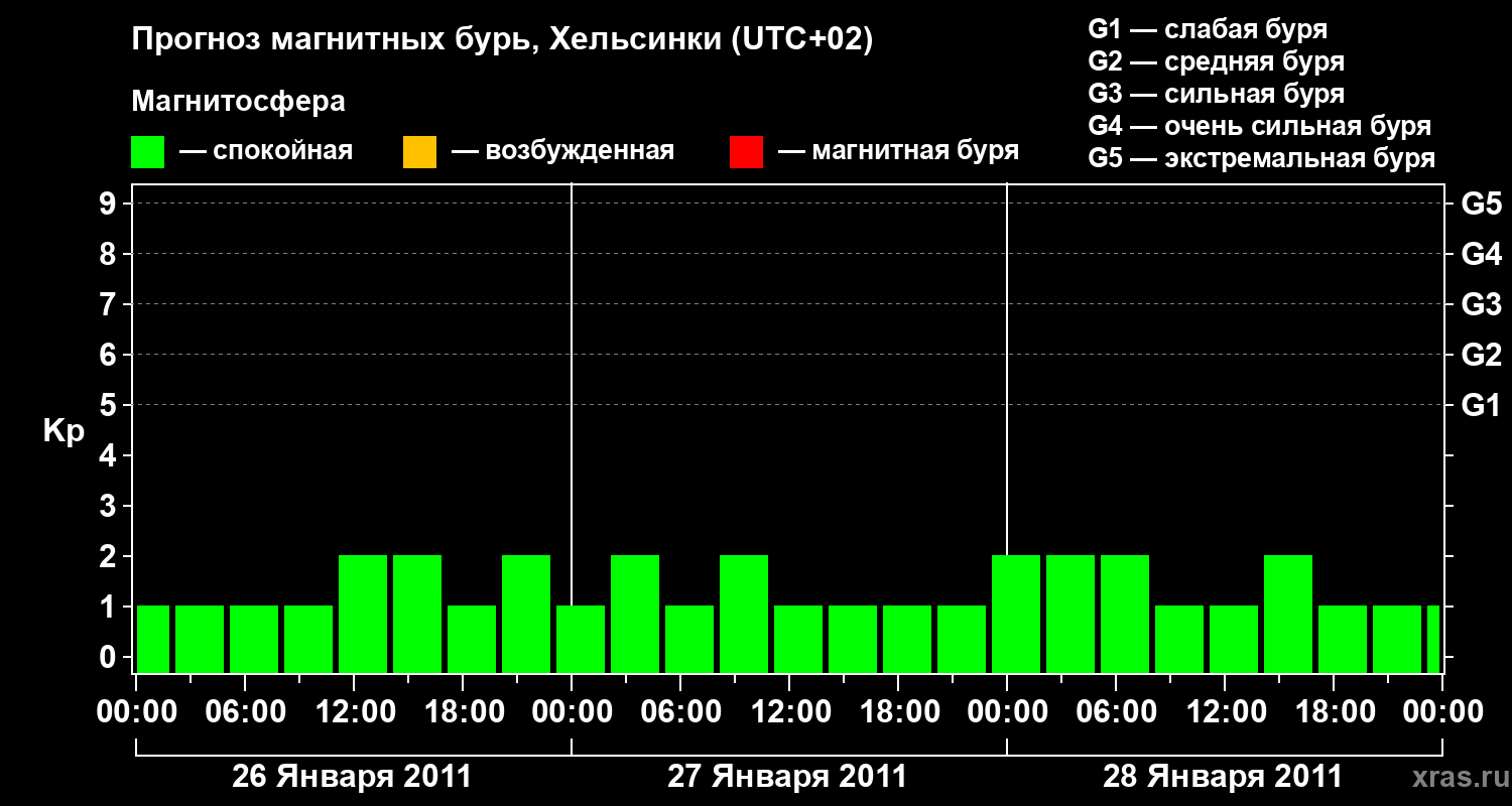 Прогноз магнитных бурь Хельсинки — 26 января 2011 года