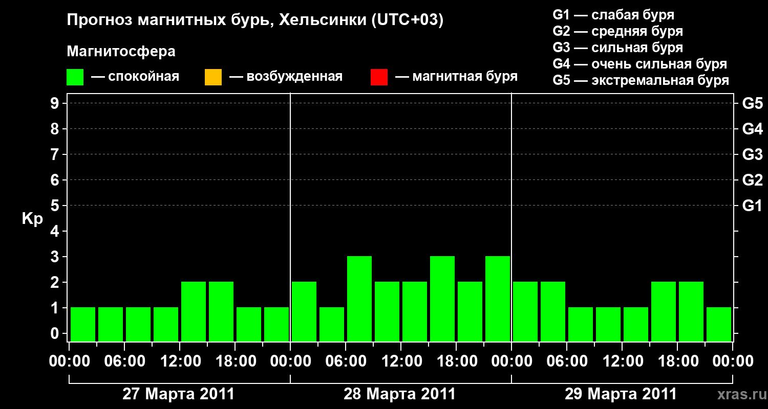 Прогноз магнитных бурь Хельсинки — 27 марта 2011 года