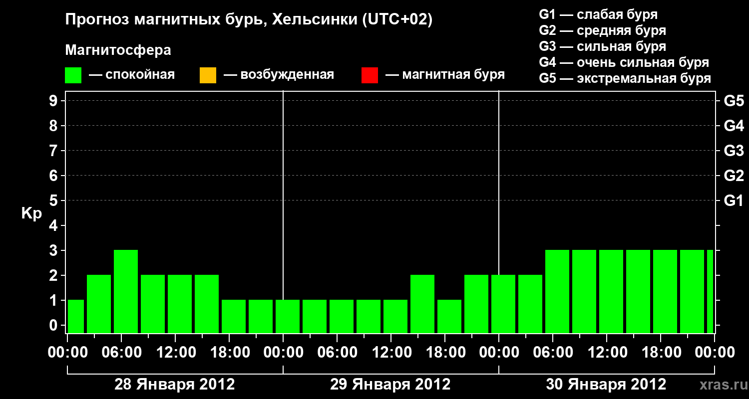 Прогноз магнитных бурь Хельсинки — 28 января 2012 года