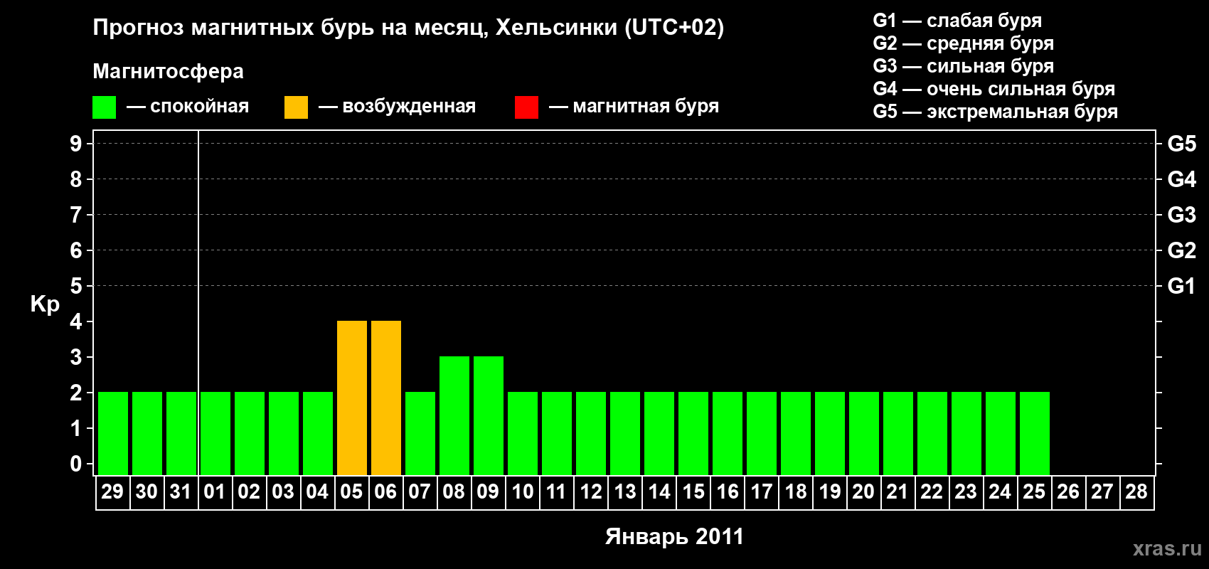 Прогноз магнитных бурь Хельсинки — 29 декабря 2010 года