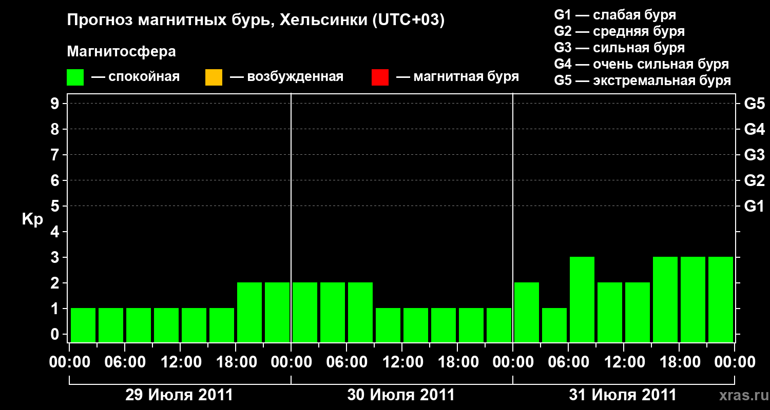 Прогноз магнитных бурь Хельсинки на 29 июля 2011 года