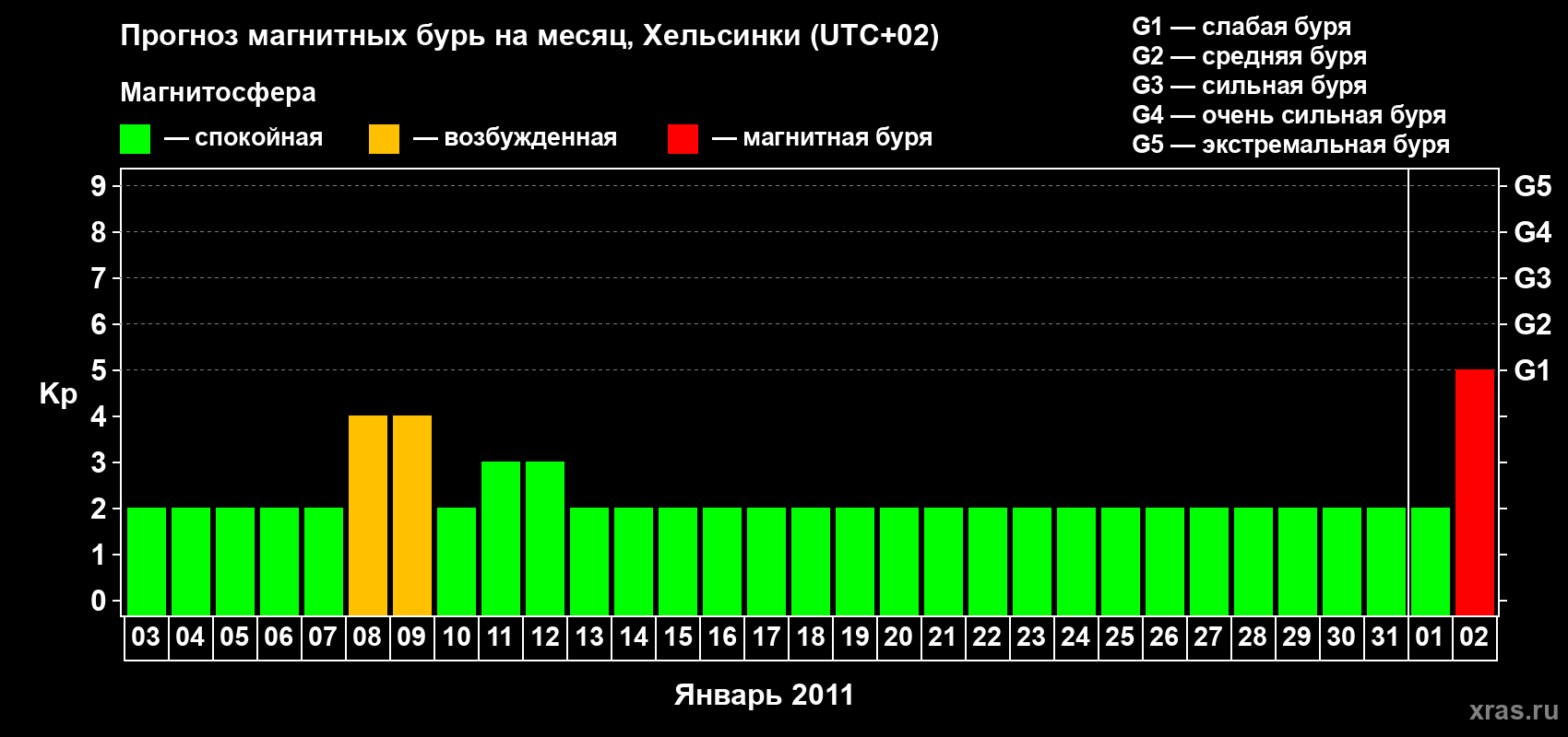 Прогноз магнитных бурь Хельсинки — 3 января 2011 года