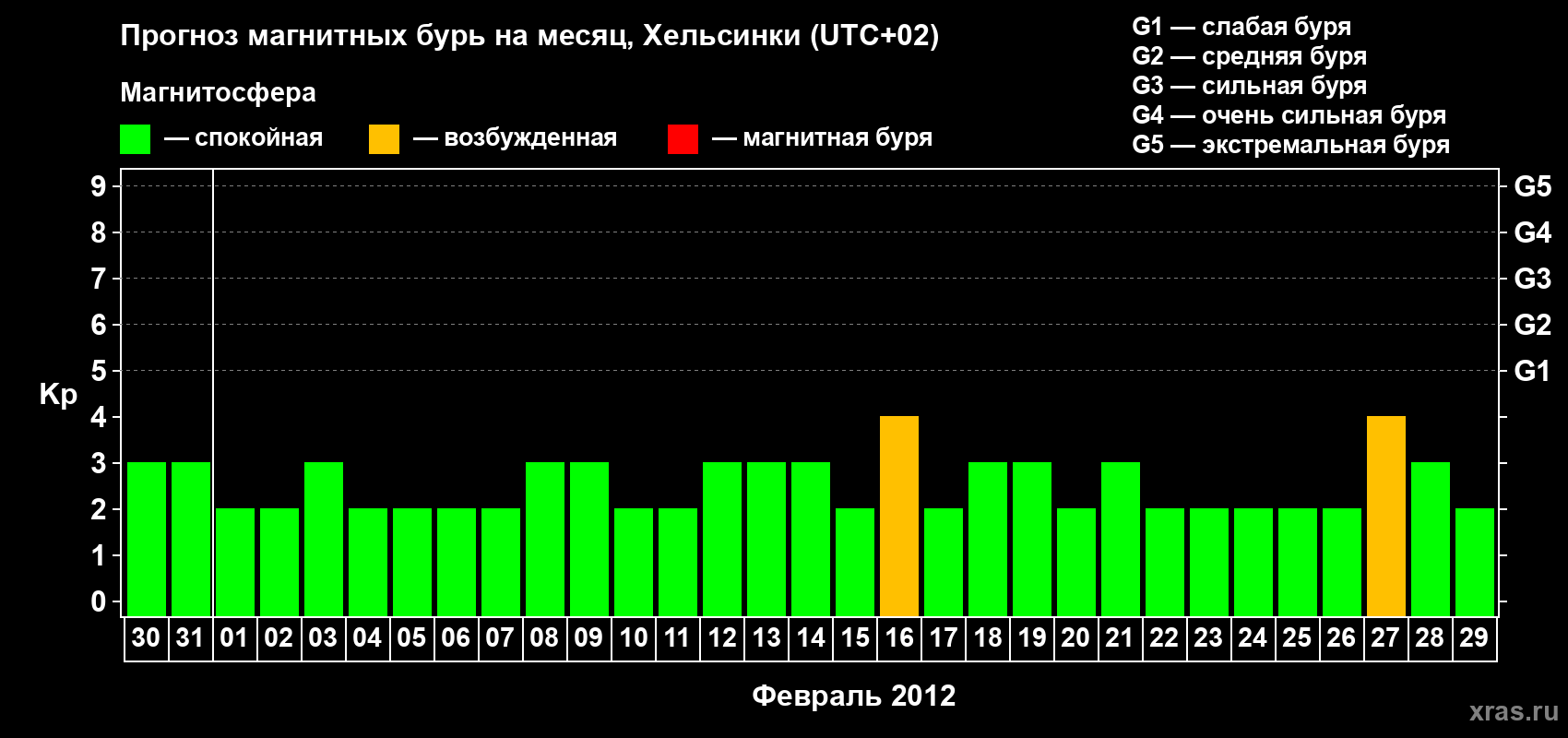 Прогноз магнитных бурь Хельсинки — 30 января 2012 года