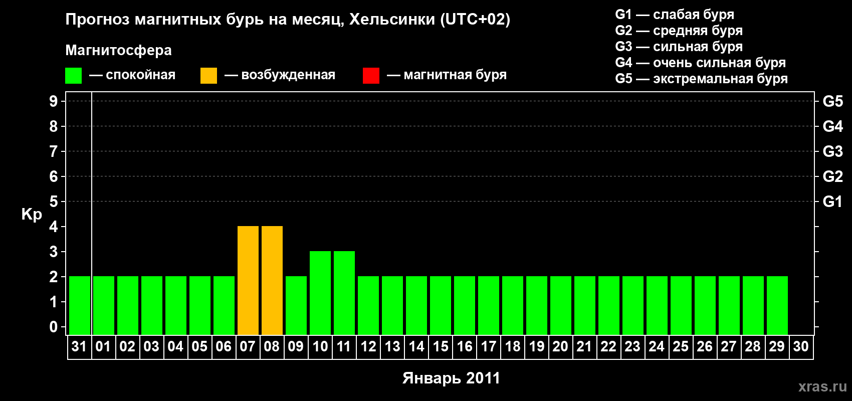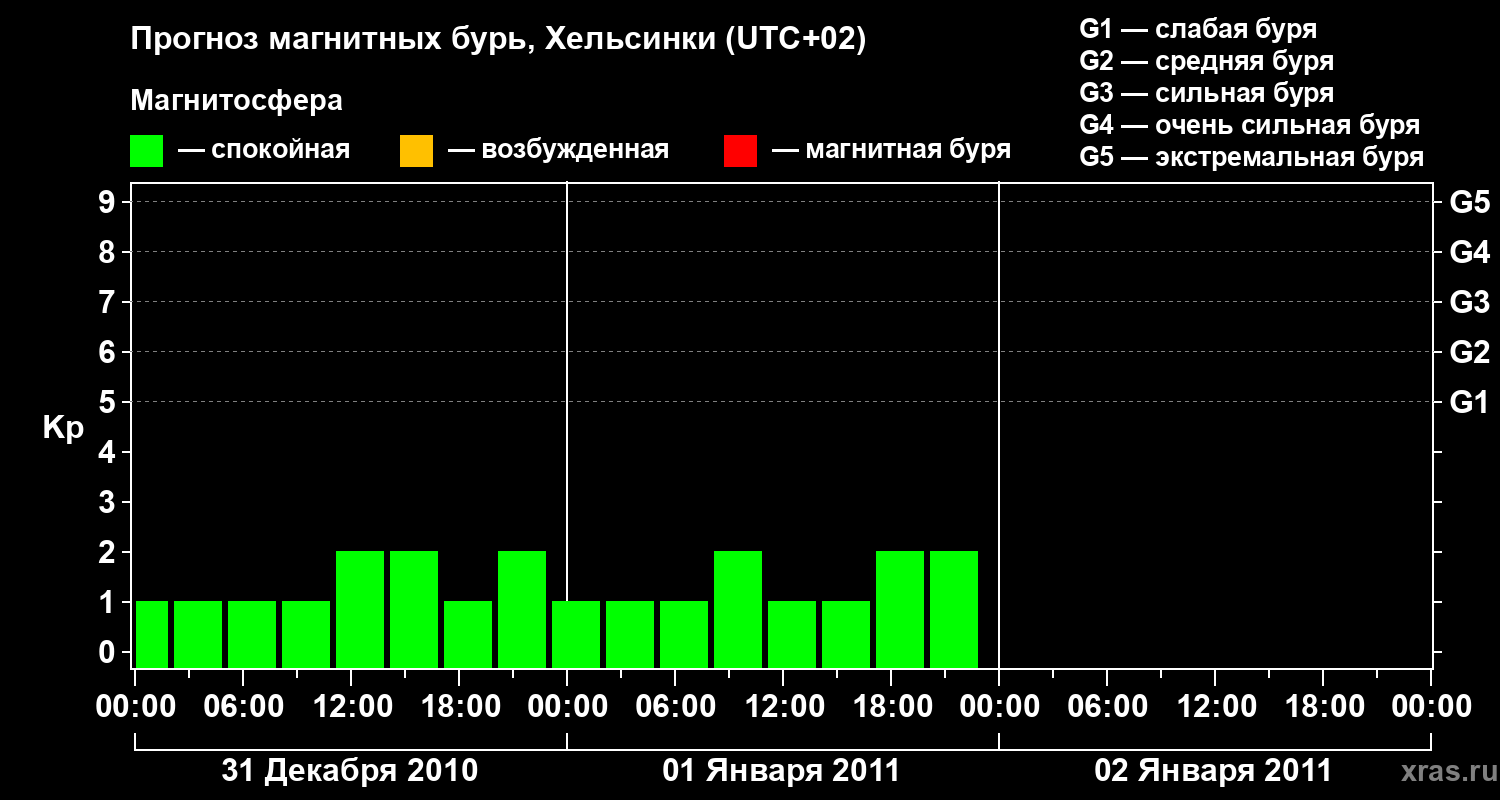 Прогноз магнитных бурь Хельсинки — 31 декабря 2010 года