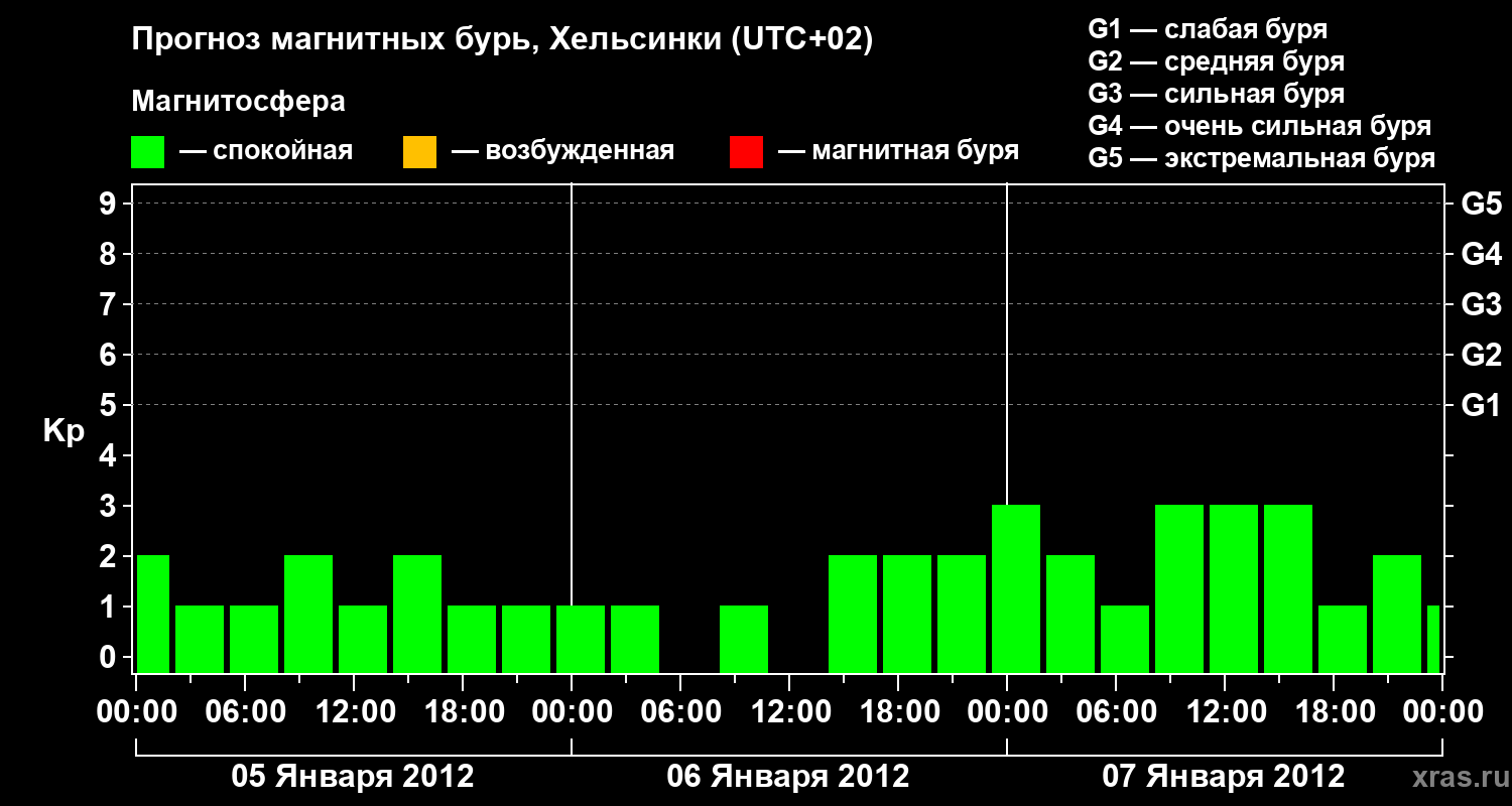 Прогноз магнитных бурь Хельсинки — 5 января 2012 года