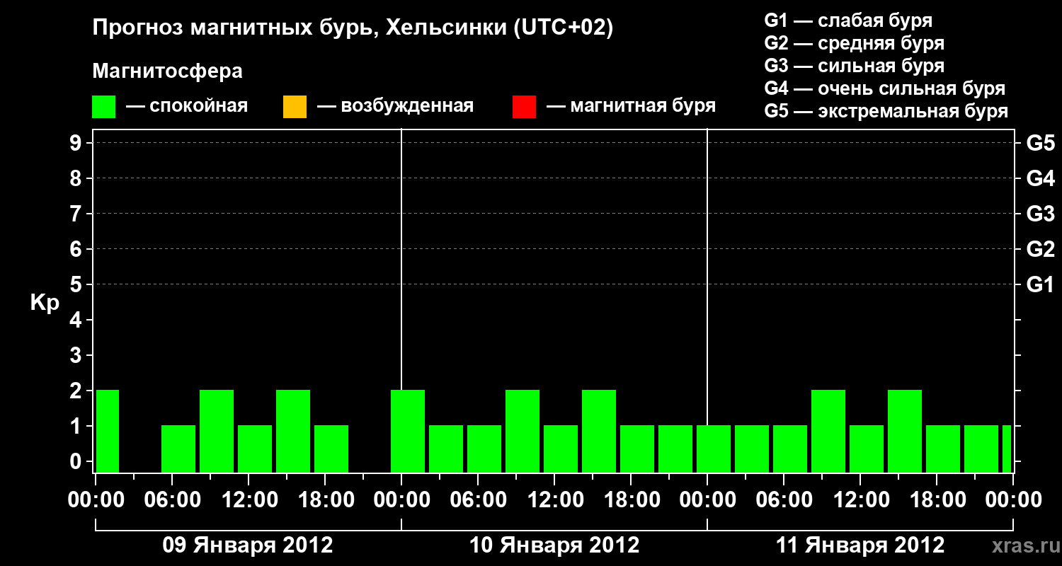 Прогноз магнитных бурь Хельсинки — 9 января 2012 года
