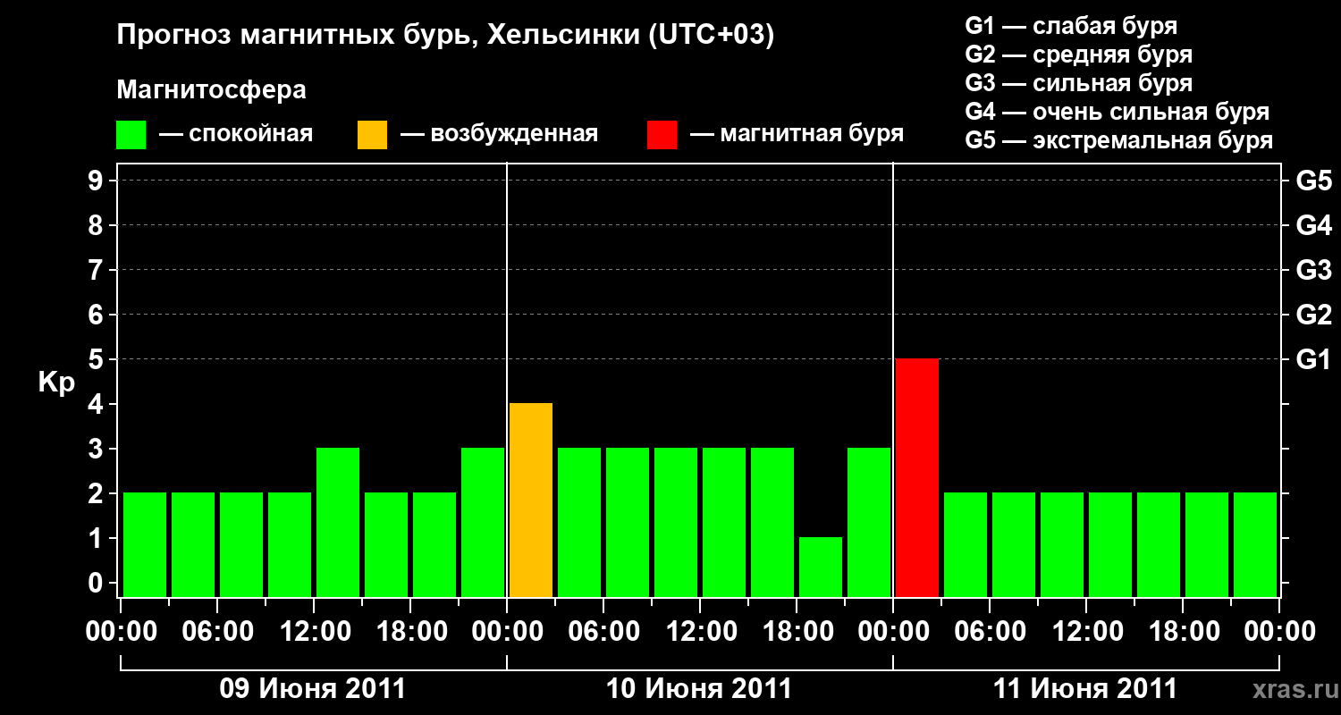 Прогноз магнитных бурь Хельсинки на 9 июня 2011 года