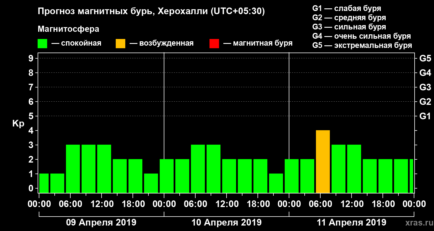 Прогноз магнитных бурь Херохалли на 9 апреля 2019 года