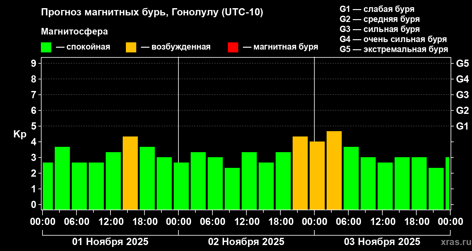 Прогноз магнитных бурь Гонолулу на 1 ноября 2025 года
