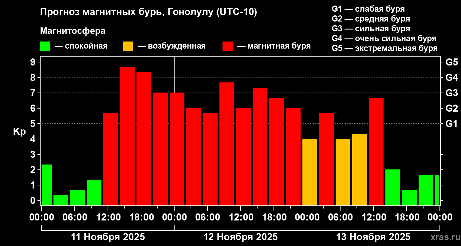 Прогноз магнитных бурь Гонолулу на 11 ноября 2025 года
