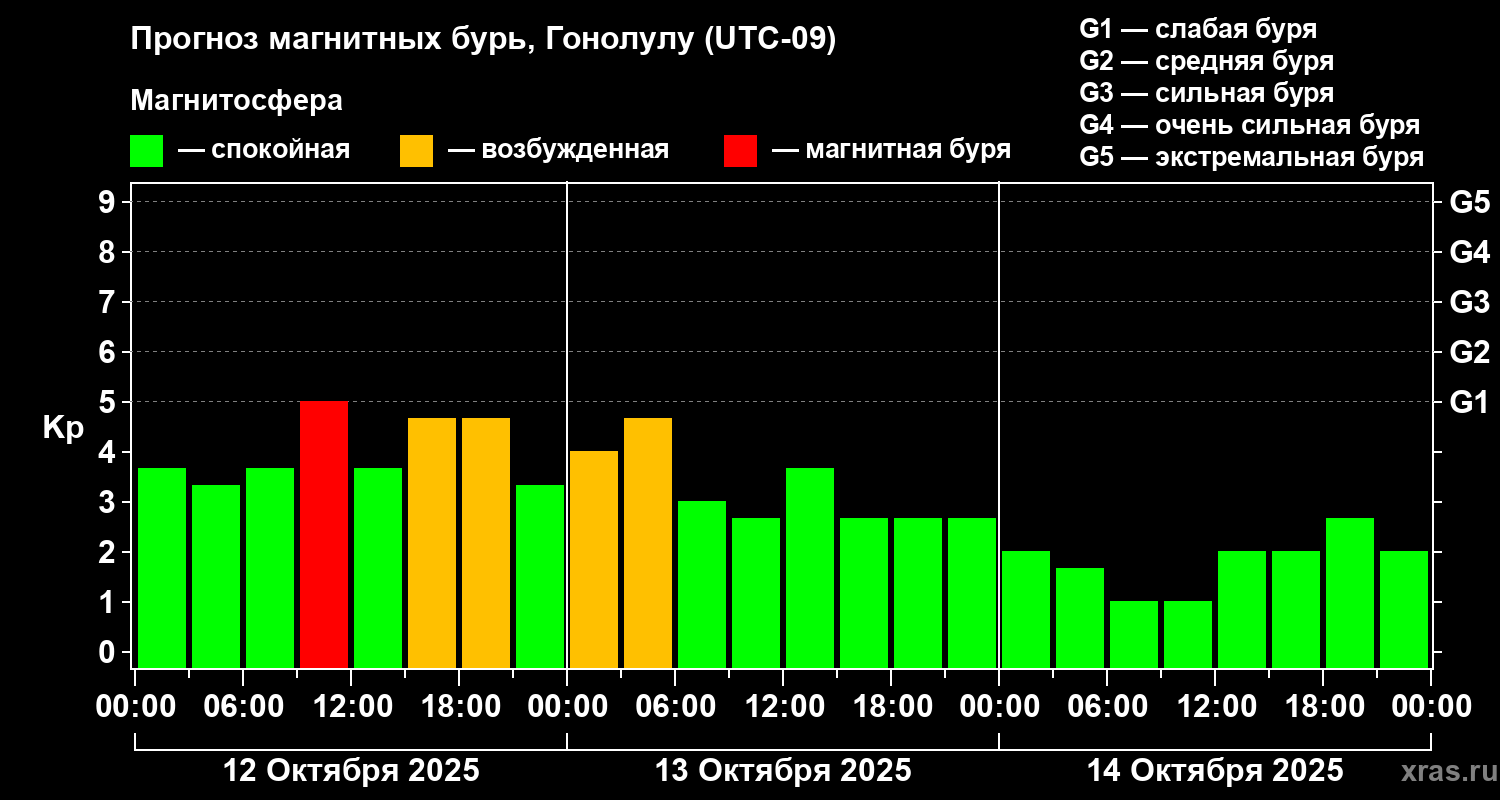 Прогноз магнитных бурь Гонолулу на 12 октября 2025 года