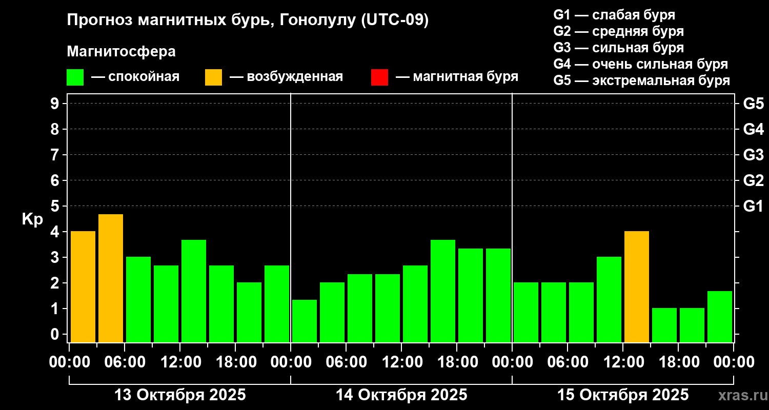 Прогноз магнитных бурь Гонолулу на 13 октября 2025 года