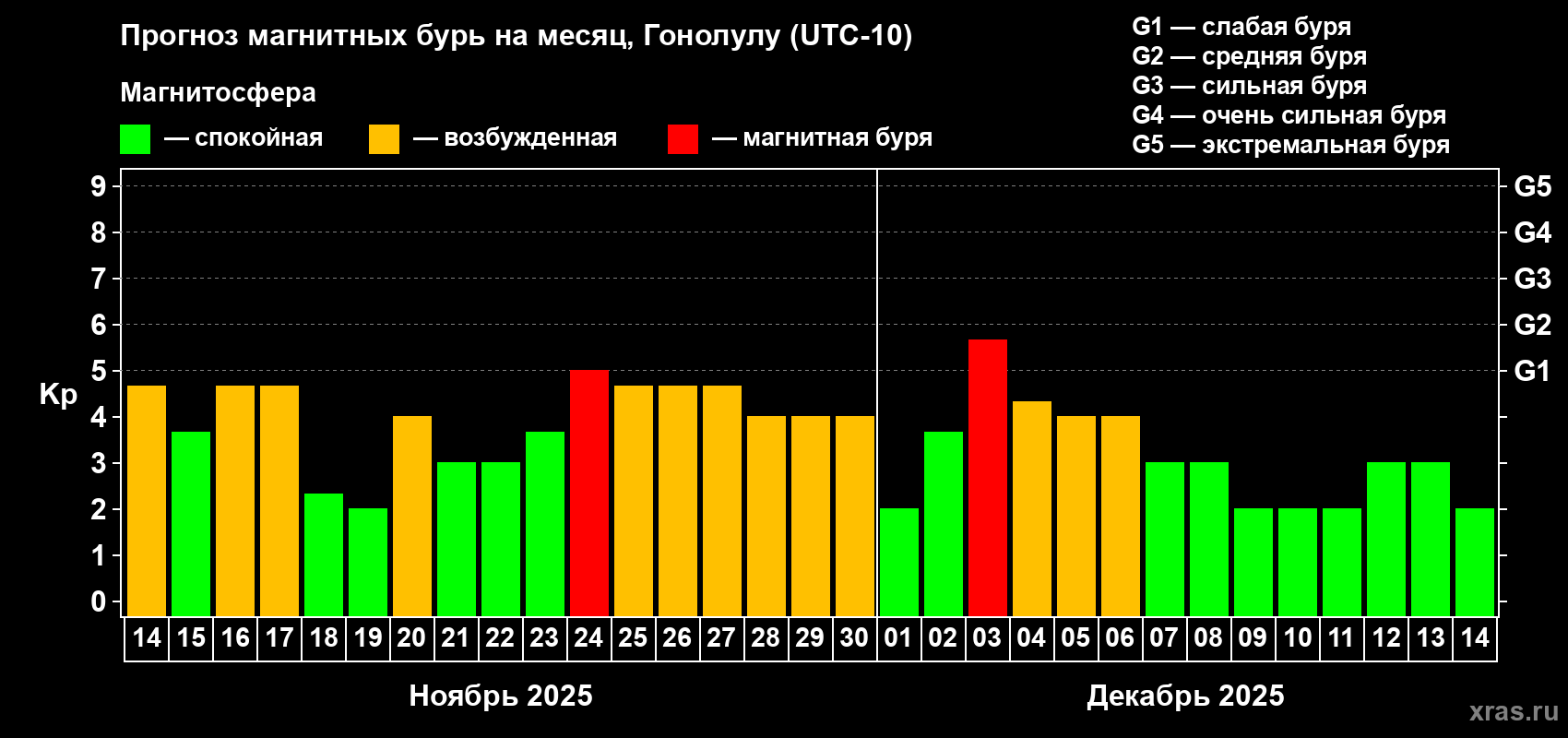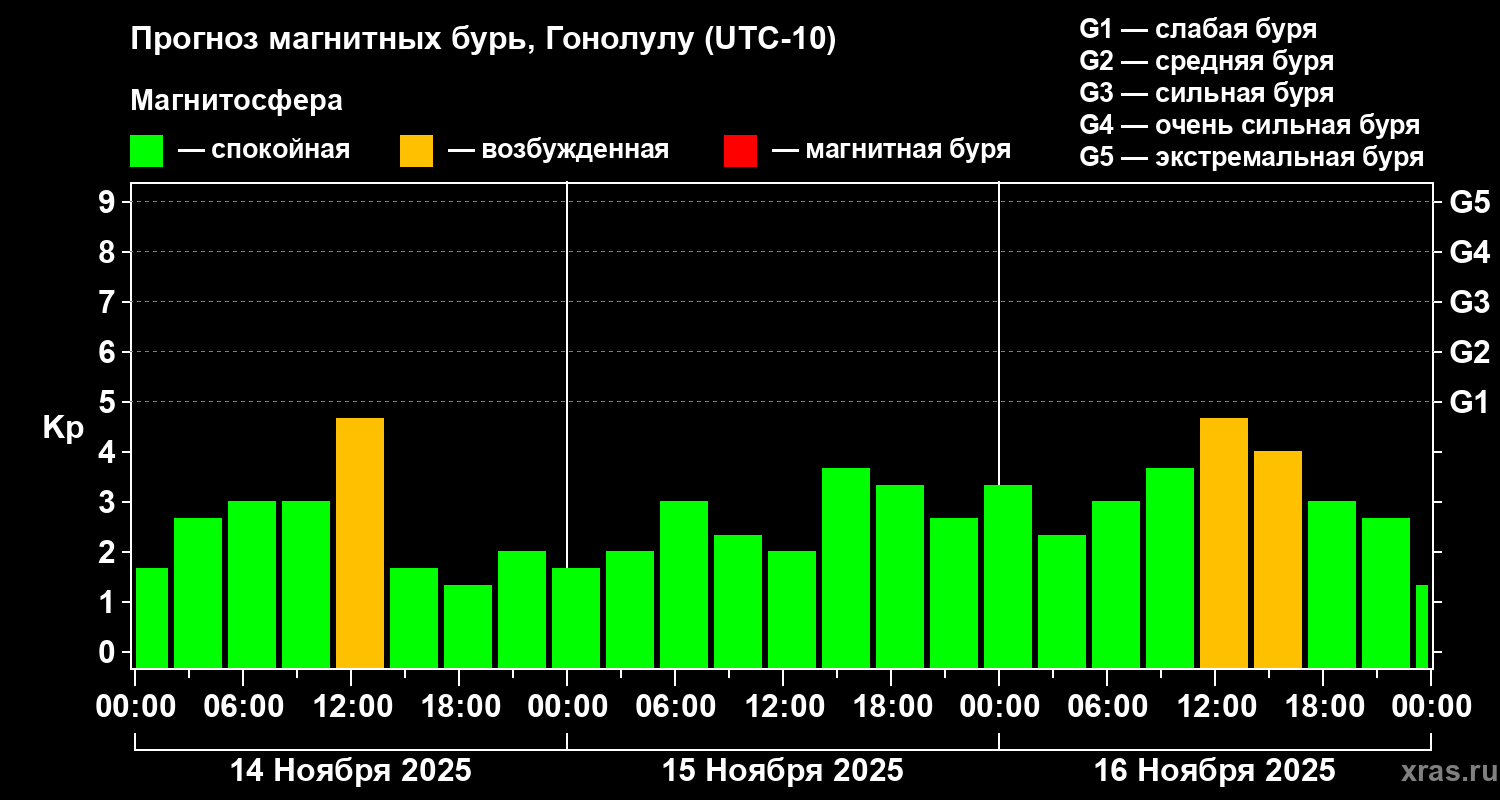 Прогноз магнитных бурь Гонолулу на 14 ноября 2025 года