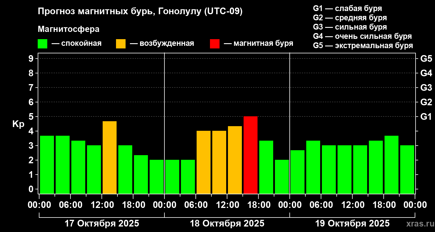 Прогноз магнитных бурь Гонолулу на 17 октября 2025 года