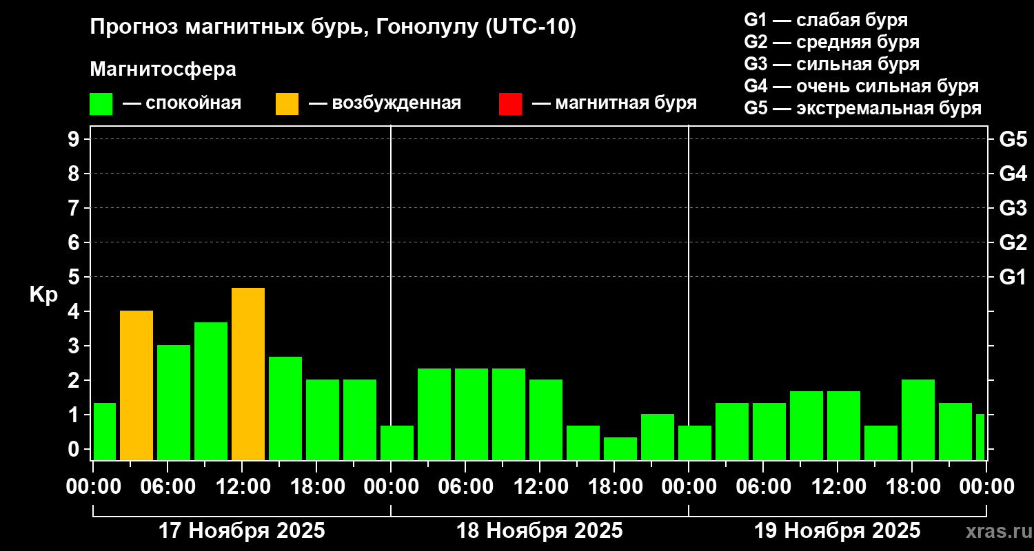 Прогноз магнитных бурь Гонолулу на 17 ноября 2025 года